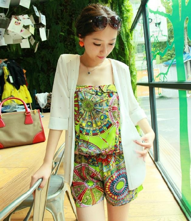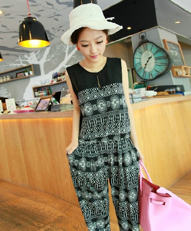轻盈飘逸感的雪纺连身裤,张弛有度。胸腰的橡筋设计更为合体,臀部有余地,穿着舒适洒脱。