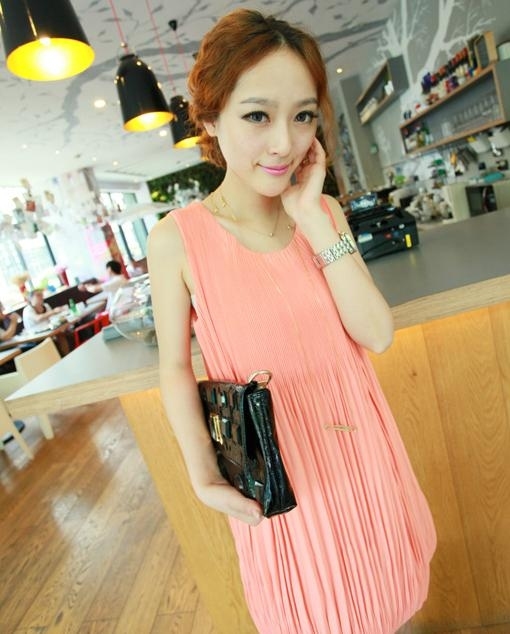 上身超赞的连衣裙哦百褶的款式显瘦哦~~质地也是透气的雪纺有内衬哦,