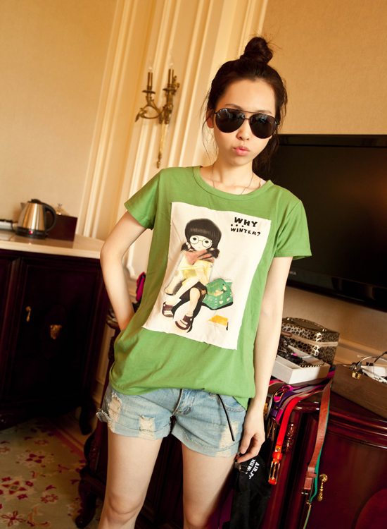 夏日不可或缺的俏皮可爱卡通Tee,随意搭配牛仔短裤就能十分休闲