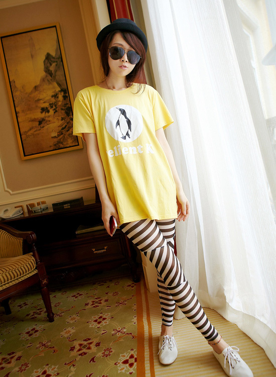 宽松蝙蝠袖动物图案Tshirt,跟包臀裙搭配就能尽显性感魅惑的随性气息哦