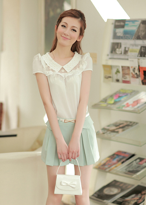 甜美的粉绿色、清新的白色,当这样粉粉嫩嫩的颜色撞在一起,不仅能让你变身俏皮可爱春姑娘,还能让你焕发出好气色呢!