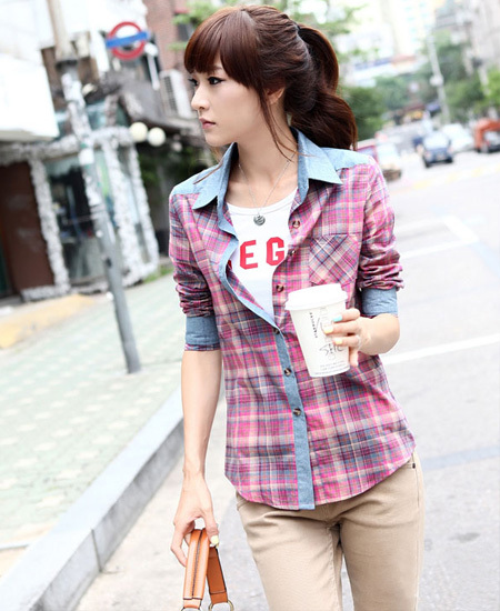 格子元素,属于服装设计中经典的时尚设计元素,或街头,或休闲,或优雅,或通勤。这款格子衬衫,采用多样色彩格子,色彩组合艳丽美观,合体设计,时尚的拼接设计,很有休闲的味道,又透露出优雅文静的气质。