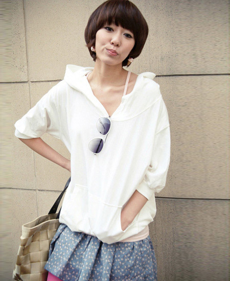 蝙蝠型外套全方位显瘦。两件套设计,一举两得,省去了选择搭配的烦恼。外衣宽松舒适,T恤打底贴身合体,适合春秋两季穿着。外衣横开大领,胸前的设计,以及卫衣侧缝的设计很有特色。面料是采用棉和涤纶混纺而成,舒适度强,不会缩水也不会掉色。一套衣服可以做两件来穿,物超所值!