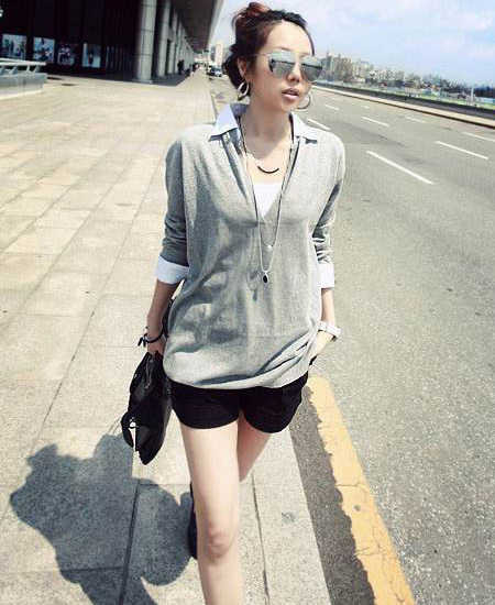 假两件套设计,简单随性;时尚V领,完美修饰线条。宽松款式胖MM也不用担心穿不下啦领子和袖子都是可以拆卸的哟,省去了很多麻烦随你怎么搭配,面料柔软舒适,大爱!