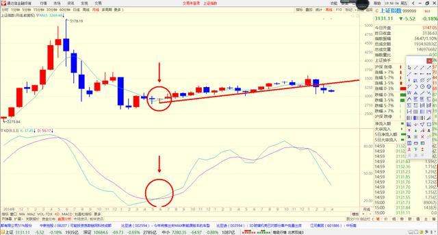 中线以上证指数月线级别KD指标金叉,周线为多方循环架构为案例分析。上证指数月线级别KD指标2016年6月金叉,周线为多方循环架构。