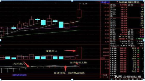 https://p3-tt.byteimg.com/origin/pgc-image/RzOWQkeB3xI0Y7?from=pc海底电缆是指MACD指标在零轴以下运行很长时间(一个月以上),DIF线金叉DEA线以后(零轴以下金叉),两条线不是强劲上升,而是与DEA线粘合成一条直线,数值几乎相等。一旦两条线开始多头发散,即可买入。零轴以下的海底电缆形态的形成,这时主力介入,进入压箱顶吸货所致,应理解为择机入市。