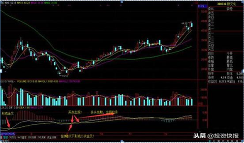 当白线上穿黄线时称作金叉,白线下穿黄线称之为死叉。金叉为买点,死叉为卖点。在具体的使用时,我们可以参考以下几句话: