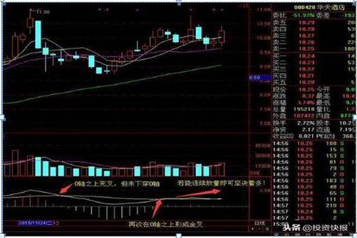 2、零轴下方金叉,反弹;零轴上方金叉,强势回档。