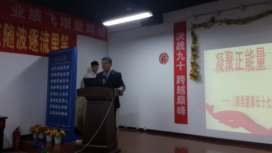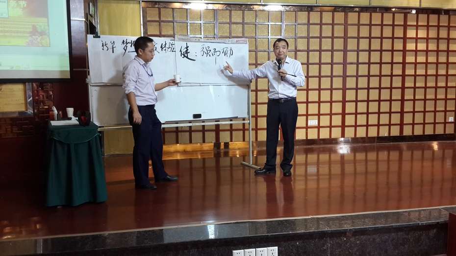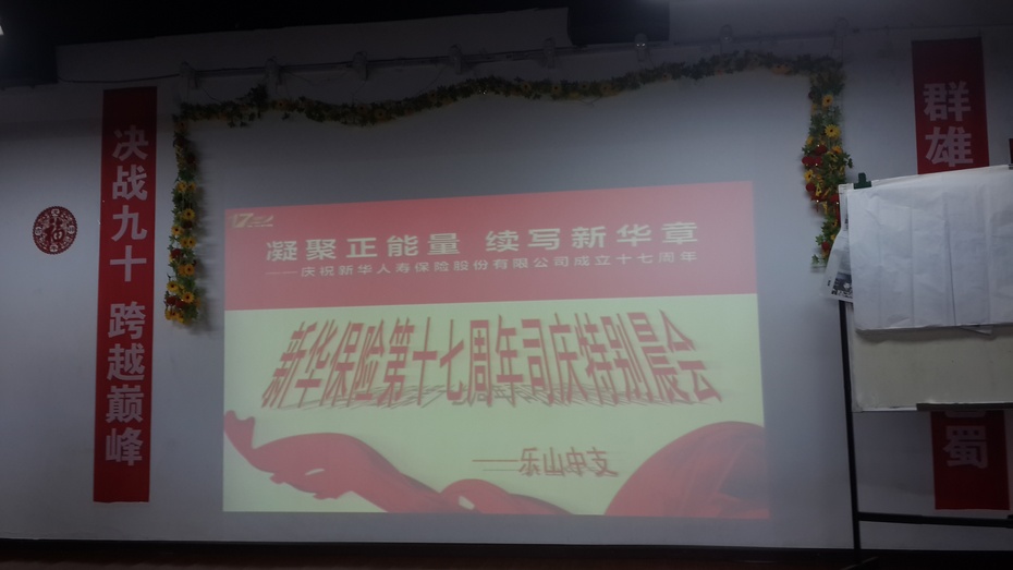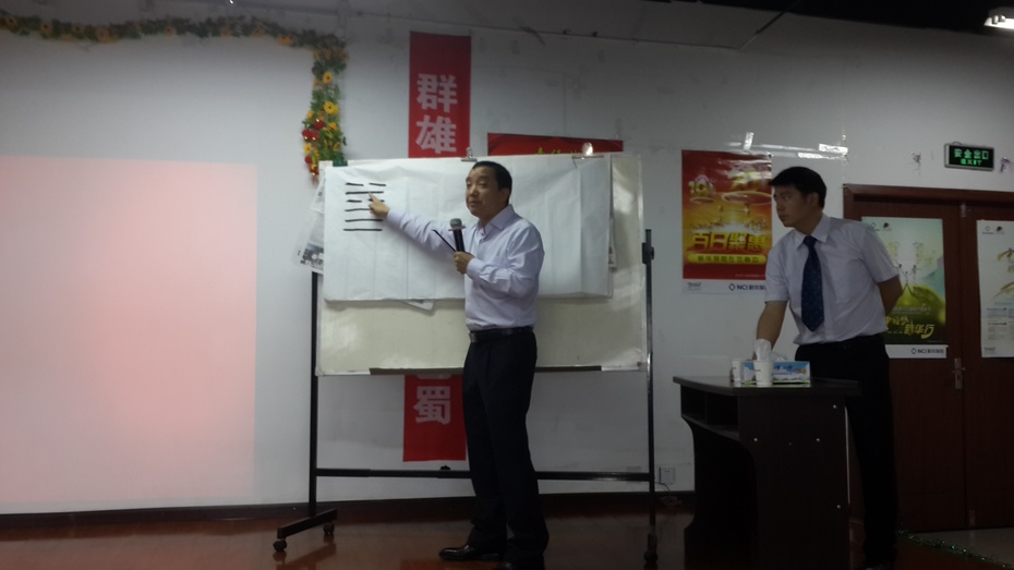 湖北中本营养师网乐山报道 9月6日上午,新华保险成立17周年纪念日,新华保险四川乐山中心支公司举行司庆特别晨会,乐支公司总经理邓传华宣读了康典董事长17周年司庆贺词。孙光夫受邀参加,并做题为《保险经纪人的营销之道》的分享。晨会后,孙光夫还应邓总之请,欣然提笔,书写了“无我无私无为无碍”八字,作为赠语,以激励新华保险经纪人。