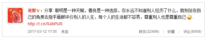 对于网友们的质疑和抨击,张杰妻子谢娜发布鸡汤文说:
