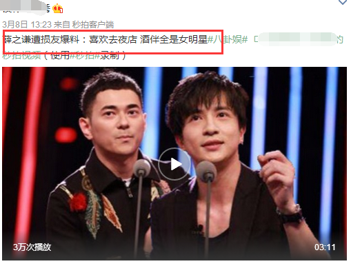 不过愚公愚乐还是扒出来一个视频,薛之谦遭损友爆料:喜欢去夜店,酒伴全是女明星,原来这是薛之谦参加吐槽大会的节目视频。http://si1.go2yd.com/get-image/0C2rQHjasaW