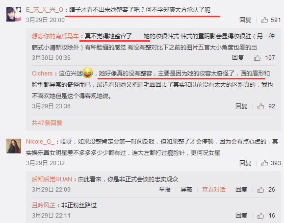 不过也有网友坚持认为杨紫整容了:哎呀,如果没整肯定会第一时间反驳,但如果整了才会停顿,因为会有点心虚的,其实娱乐圈女明星差不多多多少少都有过,连大左都打过瘦脸针,更何况女星。http://si1.go2yd.com/get-image/0CCnBUGGYrY