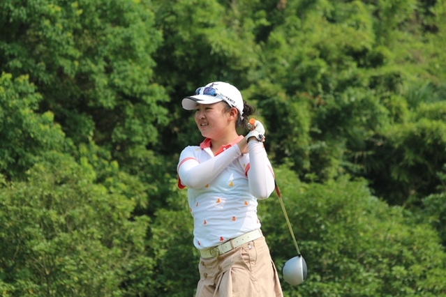 张梓萱是黄山培训中心学员,2012年底来黄山正式接受训练,12岁的她,短短一年多的球龄,已经获得2014汇丰全国青少年高尔夫冠军赛南京站女C组个人冠军。暑期参加锦标赛营,也是为了更好的提高自己,挑战更大的赛事舞台。图为林玉萍教练指导挥杆。