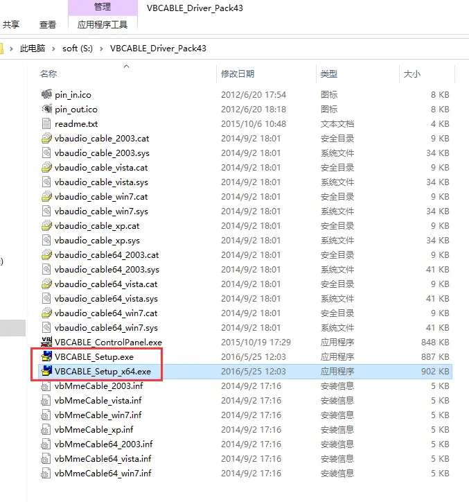 3.下载完压缩包后,解压文件,如上图得到 VBCABLE_Driver_Pack43 整个文件夹。