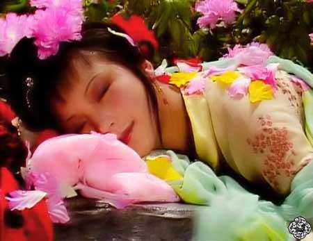 当然,她最美的形象是,醉眠大石,芍药花落满了一身一地,她用手帕盖着脸,梦中还吟着诗。