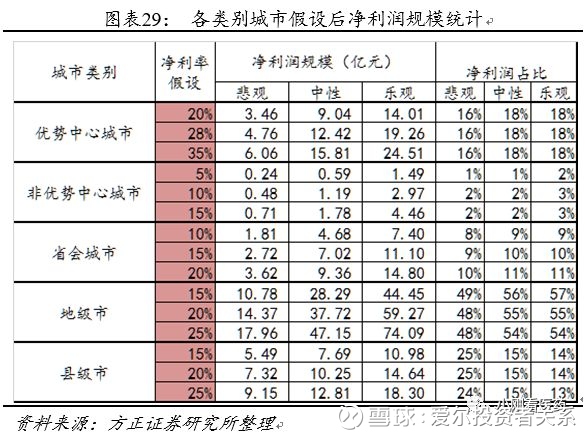 我们对地级市净利率进行了统计,达到成熟阶段后,地级市净利率通常稳定在15-25%的范围内。因此,我们将净利率的数值设置在15%,20%和25%。