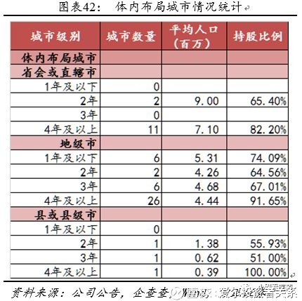 测算时,我们使用的人口数据为万得中中国宏观数据库的人口数据,其数据来源为国家统计局。省会/直辖市城市我们使用的是2016年常住人口数量,地级市使用的是2010年的常住人口数量(用2010年的数据原因是该年度数据量最全,且不同年份人口数量变化不大),县级市使用的是2013年的年末总人口数(该人口数的口径为户籍总人口)。
