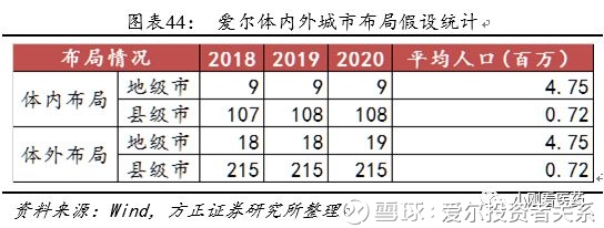 测算的核心思路是根据爱尔的医院开设的计划、开设地区的人口规模,结合历史数据获得不同级别城市每百万人口收入规模与净利率的假设,推算爱尔长期的收入与净利润规模。