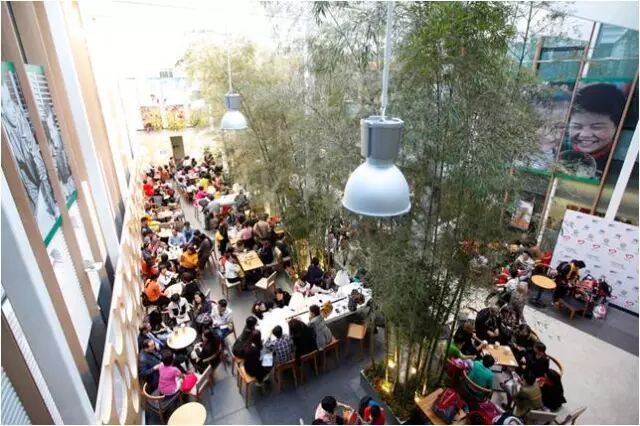 巨大的中庭、三层楼的挑高、全景天窗、高耸至顶的竹林……这里是一楼的RICH&JAY咖啡广场,拿铁、摩卡是必须的,“蛋白饮”则是安利独有的,所用原料是纽崔莱蛋白粉和益之源纯净水。你每购买一杯饮品,都是为西部贫困儿童捐献一份爱心。喝着咖啡还能做慈善,小安的心和和煦的秋阳一样暖暖的!