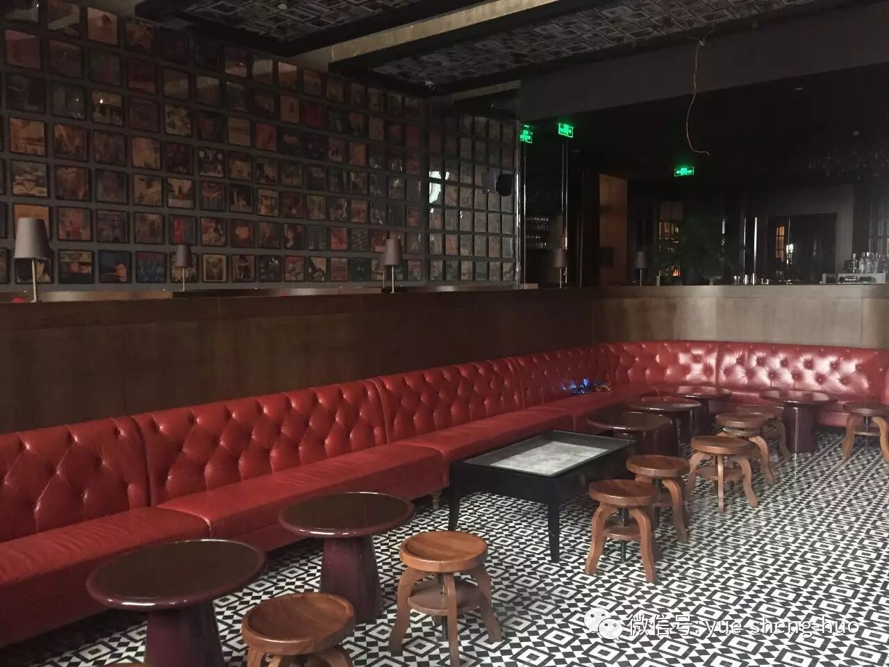 大堂吧一处, 可见层高较低, 设计师仅仅用一面湛蓝的墙体就将整体区域提亮而有质感。