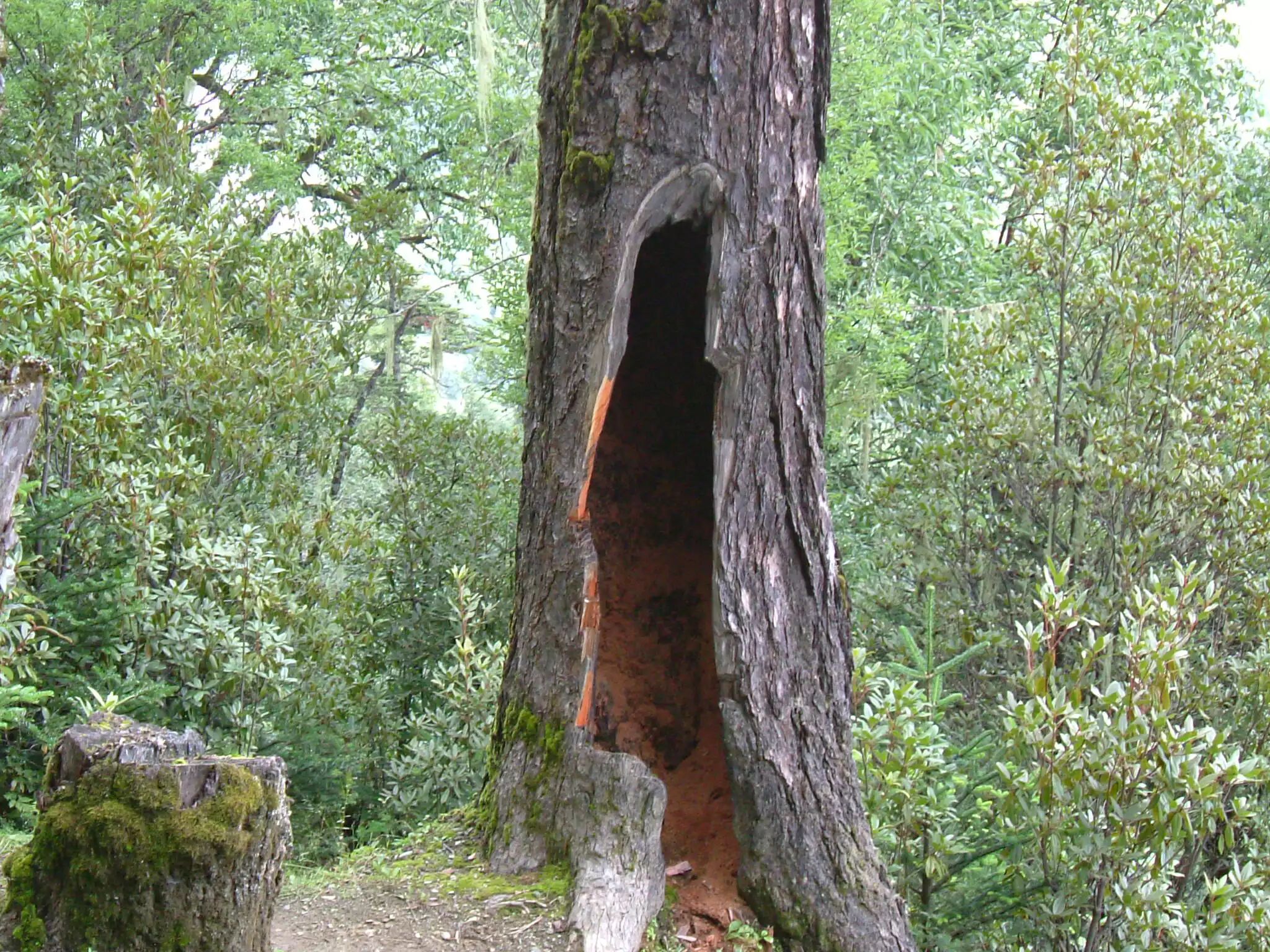 来自马来西亚的凯民是第一次随我来登山,酷爱户外运动的凯民曾几次与我一同徒步香格里拉、泸沽湖等地。在一棵巨大的冷杉树上,凯民采下一朵硕大的、酷似灵芝的树舌菌类植物,当他正爱不释手,欲解开背包要装进去时,“别装了凯民,这种灵芝不值钱的。”我急忙制止了他:“这种假灵芝菌很多的,满山都是,不信你再往前走,多得很哪!”凯民没把树舌菌装进包里,却把它拿在手中,舍不得扔掉。我们继续走了几十米,抬头看到一组更大的树舌菌生长在冷杉树上,每一朵都比凯民手中的还要大,“还要吗?这个更大。”我调侃着,用手杖顶下了一朵大树舌菌。凯民如获至宝,坚决表示要一网打尽:“这种稀罕物带回马来西亚那可就值钱啦!”看着他乐不可支的样子,就好像真的抱住了一个聚宝盆,我真是忍俊不禁,这下他的背包又得加重了。
