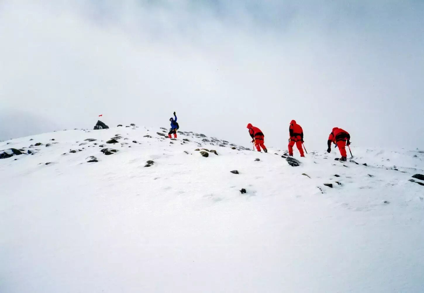 夜晚,急驰的暴风雪把帐篷吹得啪啪作响,特殊的轻型铝杆仿佛随时要被折断。我们的三顶帐篷紧挨在一起,每一顶都被狂风挤压得变了形,外帐门帘的固定绳索被风吹断,狂风挥舞着外帐门帘反复抽打着帐篷。“飞豹,飞豹,帐篷杆断了!”隔壁老王急促的呼叫。“这个鬼天气,明天怎么登顶呵!”我也暗暗叫急,想必这一夜是无法再安稳地入睡了。下半夜风速减慢,内急的我只好出去方便,想着顺便再固定一下被吹断的绳索。刚出帐篷,就见头顶上满天的星星点点,这预示着明天将是一个好天气,我抑制不住激动得大叫:“天晴了!”整个营地都被惊醒了:“豹哥,天晴啦?!”“呵,天晴了,明天可以登顶啦!”
