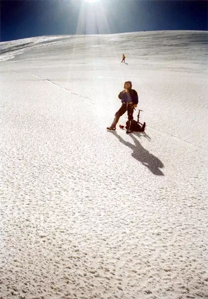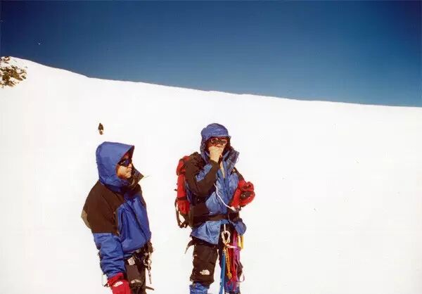 度,怪不得帐篷门的拉链都让冰霜冻住了。我点燃高山炉,在“嘶嘶”的火声中开始缓慢地化雪烧水,准备早餐。听到旁边帐篷也传来叮叮当当的器皿声,他们也开始做早餐了,一块儿登山的队友,生物钟就像调在一起似的,行事起居都快统一为一个人了。