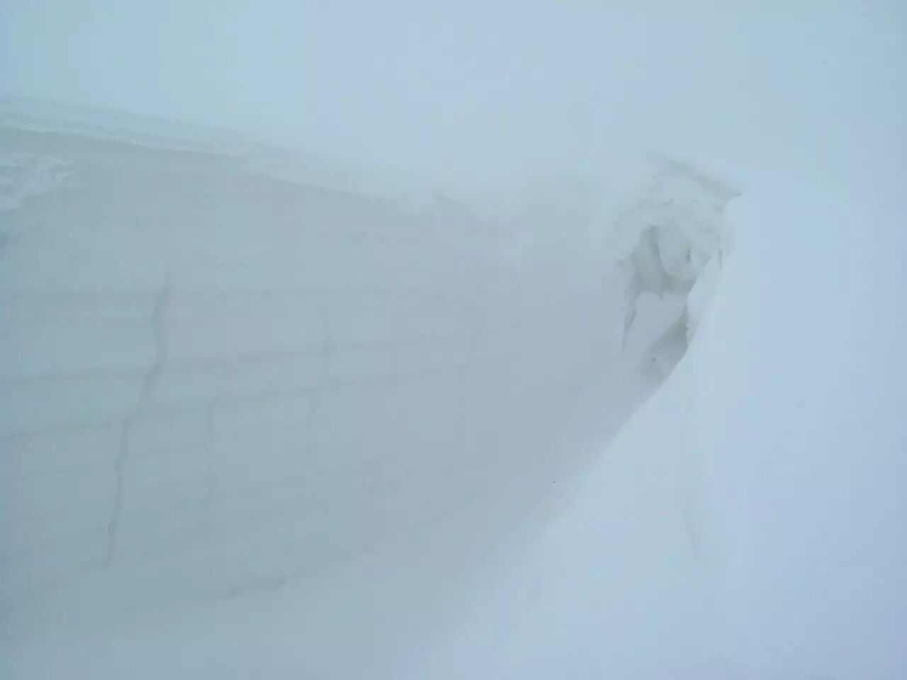 昨夜是进山以来最好入眠的一夜。昨日的急速下山,使我来不及好好享受一下营地大厨烹制的高山美食便昏昏入睡了。阵阵风雪声把我从睡梦中唤醒,这时才发现帐篷已被雪压得厚厚实实,只有不停地在帐篷里拍打篷布,待积压在帐篷上的雪块滑落,才能拉开帐篷门链。
