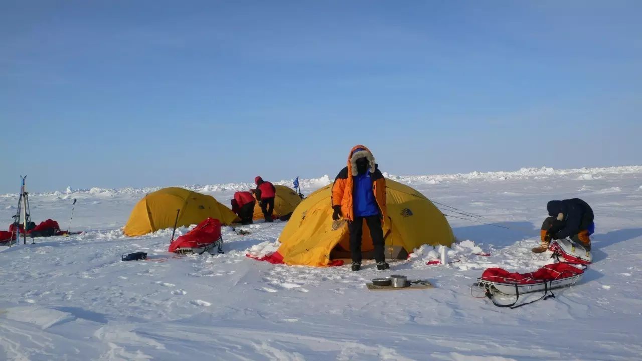 对于极点徒步来说,队员们每天最高兴的事情,莫过于扎营了。当向导一声令下告诉大家:“今天就在这里扎营了。”这意味着我们劳累一天终于可以待在帐篷里喝点热水和咖啡,取取暖了。我们会迫不及待地用短短几分钟时间就把营地搭起来,然后烧水的烧水,做饭的做饭,大家一起享受着极地的别样生活。