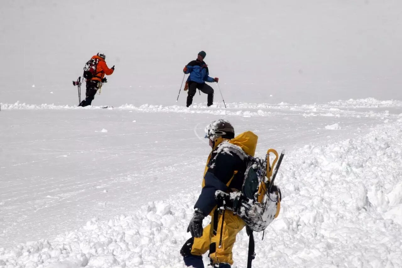 我第一个挣扎着爬出来,看到队友有的身体整个被埋在雪里只露出双手,有的头朝下倒栽着。正要冲过去救他们,就被向导拦住让我赶快撤离到安全地带。
