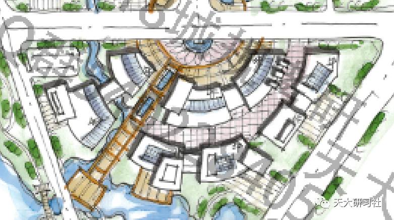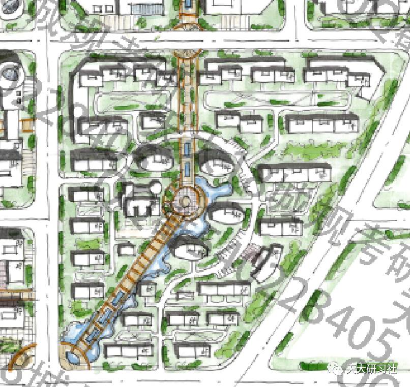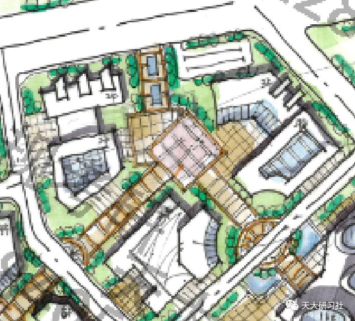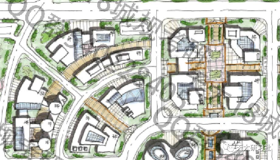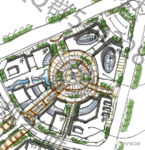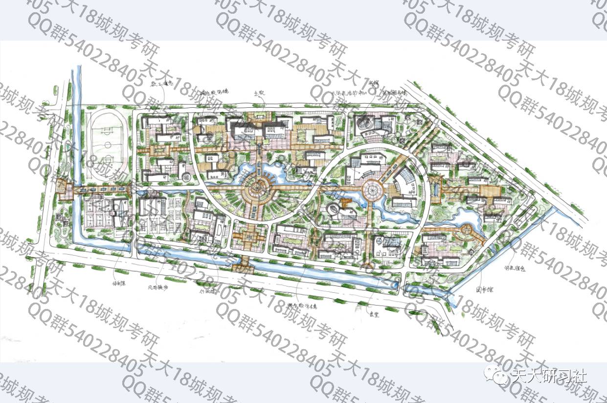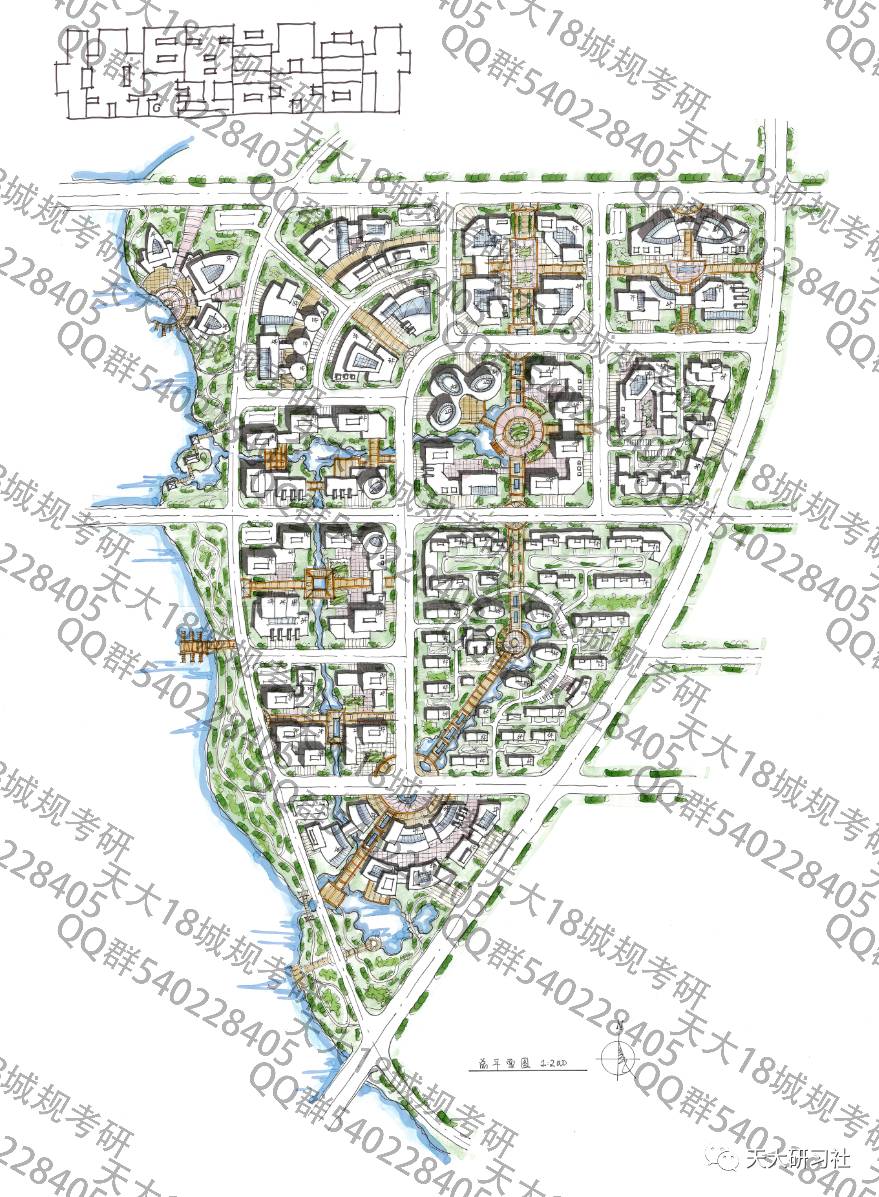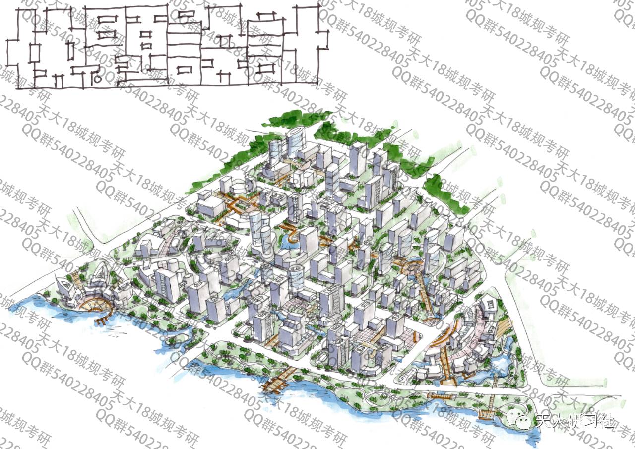 今天来跟大家分享下16年天大城规快题最高分138的李学姐的部分快题练习作品。李学姐的风格独特,辨识度高。其中较小的街区尺度、较高的路网密度、清晰明了的空间结构、对圆形空间要素的执着使用是她快题的一大特色。同时画面用色清淡,画面的对比与方案的图底关系又一目了然,成为大家争相学习临摹的对象。
