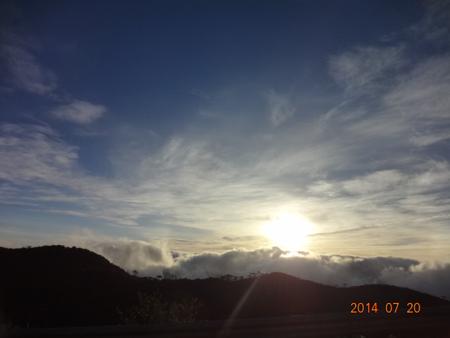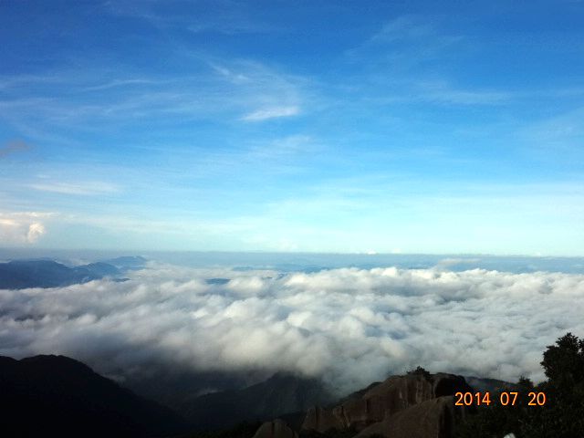 我们在“福地”凭栏眺望,不仅可以看到云海,还可以看到我们住的度假村,呵呵,还有一群人晚上玩得太晚,正在酣睡呢!不过他们还年轻,机会有的是,“福地”随时等着他们的到来。