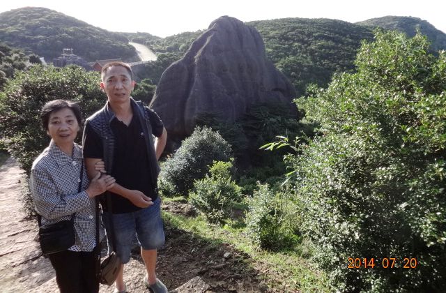 登石牛山赏美景 我们从寺庙的左侧,沿着台胞捐赠的福岱路登巍巍石牛山。左边有一块擎天巨拳的巨石,雄伟壮观,栩栩如生。