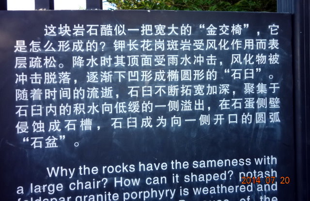 再往上走,各种奇妙无穷的岩石构成的丰富多彩的景点,呈现在我们的面前。其中有:金交椅、莲花座、通天梯、驼峰、飞凤石和石牛山山中名观——石壶祖殿,她是闽台两地的道教圣地,亦称为“福地”,让我们大饱赏眼福。