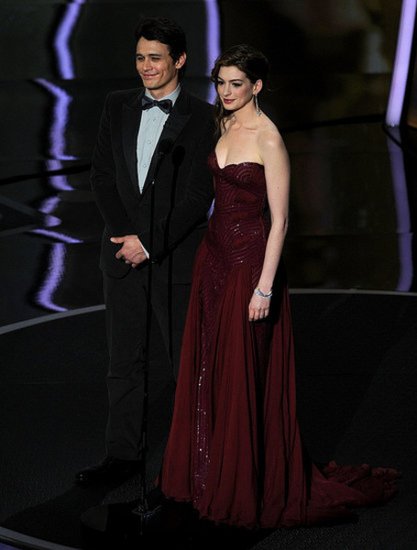 本届奥斯卡颁奖典礼的女主持,安妮·海瑟薇可谓惊艳四座,姣好的面容和妖娆的曲线几乎成了舞台上最耀眼明星。当晚她一共穿了7套服装,从长裙到西装,海瑟薇都驾驭的游刃有余,不禁赞叹她的时尚气场。