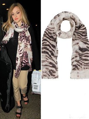 Fearne Cotton是玛百利的忠实fans,这条斑马纹的围巾就来自于Mulberry,还有同款的Bayswater,其中加入的粉红色,显得年轻活泼不少。