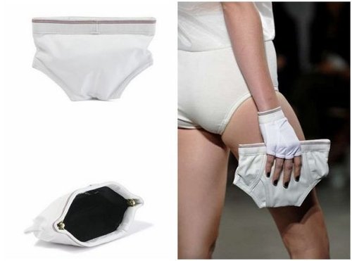 鬼才设计师Jeremy Barnes Scott Barnes 又为我们带来惊人之作——内裤样式的手拿包,颇为朴素的外型和火爆的销售(第一批已经卖断货了)让人好奇接下来会不会推出更多的彩色/分号/动 物花纹/各色印花的内裤版本,而高达365英镑(520美金)的售价又让我们愤愤不平地想,还是回家自己拿内裤缝一个好了,还有一个问题想问问设计师:这款手包分男女吗?