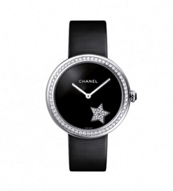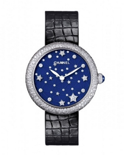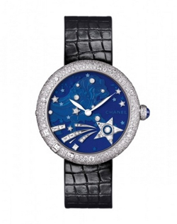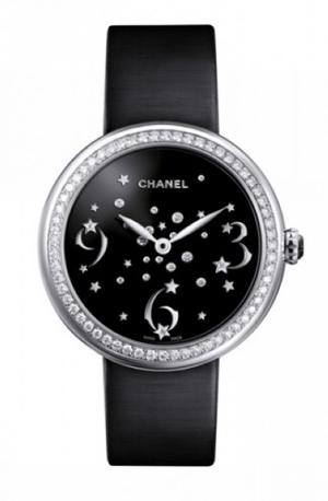 “Mademoiselle Privé”系列腕表,Etoiles filantes星空表盘18K白金表壳镶嵌60颗明亮式切割钻石(1克拉),黑色漆面表盘,镶嵌19颗明亮式切割钻石。