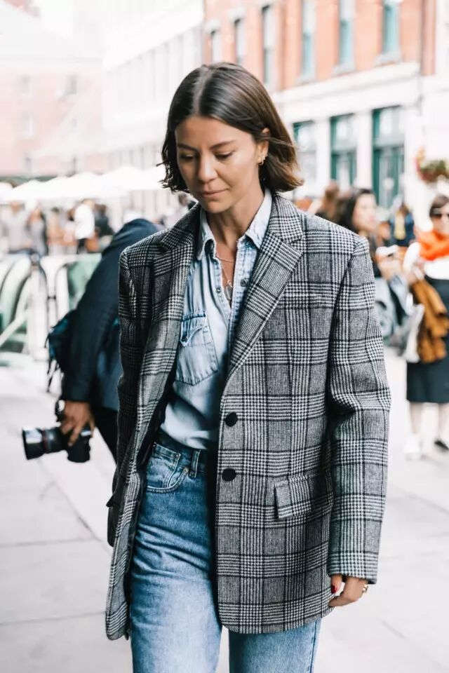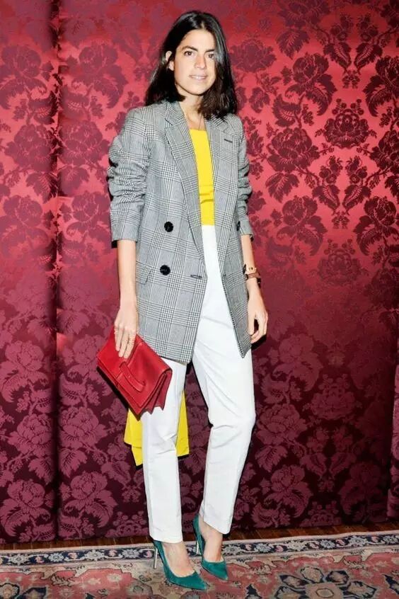 如果你气场够足,搭配功力够深,也可以配套搭配格纹裤或短裙,看上去会更正式。
