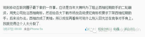 大姨吗公关其实还是很厉害的,每到融资节点都能鼎力相助。说完数据,我再来说一个插曲。前一阵才知道原来西柚改名变美柚,也都是拜大姨吗所赐。有个律师朋友研究了当时新浪科技发的文章“康讯公司称西柚经期助手商标侵权”,而用来起诉发函的公司叫康讯睿思信息咨询服务公司,看来大姨吗本意应该是想要做的比较隐蔽的,估计也是怕别人知道了不太好意思。如果不是法人用了大姨吗COO张相卓,如果不是康讯睿思捎带还发大姨吗的招聘广告,你还真不知道是怎么回事。人家借壳上市,大姨吗借壳恶意抢注,只是事与愿违,竹篮打水一场空。看来大姨吗背后放冷箭的本事也修炼已久,不是一两天了,只是隐藏之术还有待加强。