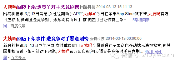 说到下架,众所周知app被app store下架后需要向苹果提出申诉,还要等待漫长的处理时间,往往需要20多天才能恢复。而大姨吗只是联系了苹果就在五个小时后重新上架!最重要的问题是,苹果回复中还能给出判断“是竞争对手刷榜”。如此牛X的实力,也干脆别做app了,赶紧开个公司改行吧,专门负责帮助下架app的重新上架,绝对日进斗金。说到这里,这场苦肉计也就能看明白了吧,收买了同情,也转移了视线。