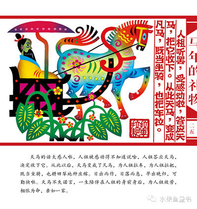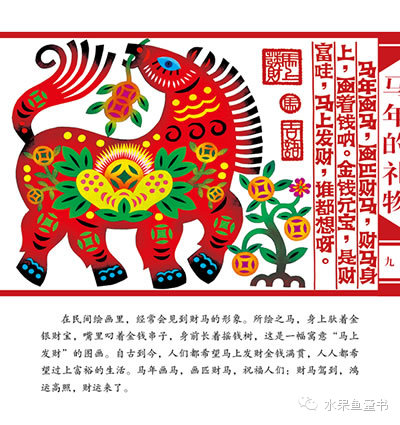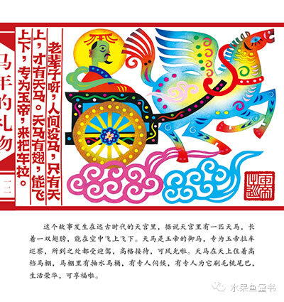 剪纸艺术家于平、任凭夫妇每年都会为孩子们创作一本生肖剪纸图画书。文字和剪纸图画都是这对夫妇艺术家亲自打磨,一刀一剪的创作中凝聚着对孩子们的美好祝愿,用传统技艺创作的真诚和自豪。色彩绚丽、风格独特,关于马的一切故事在书中活泛起来。