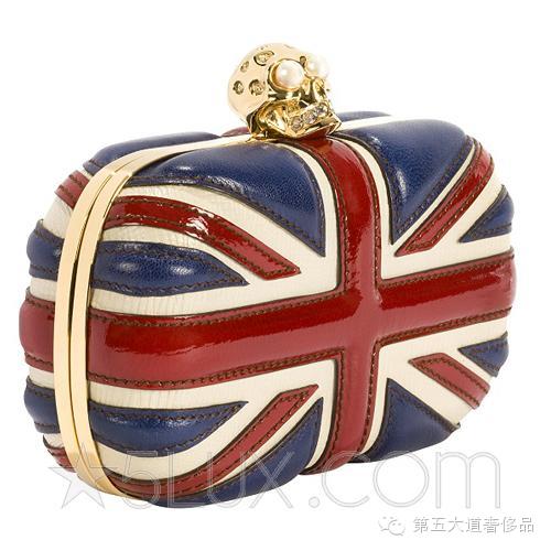 Alexander McQueen亚历山大.麦昆 米字旗骷髅头硬壳搭扣手包