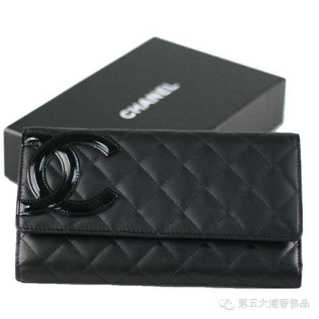 Chanel Cambon 康朋系列黑色羊皮双C logo女中款钱包