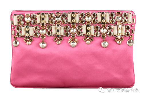 Prada 普拉达 粉色绸缎珠宝串花婉约优雅手拿晚宴包