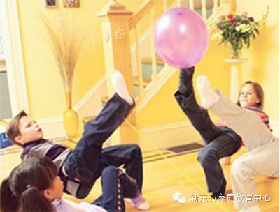 4. 击球比赛:这个游戏适合多个孩子一起参加,注意要用脚去击球,很锻炼孩子们的身体协调能力。