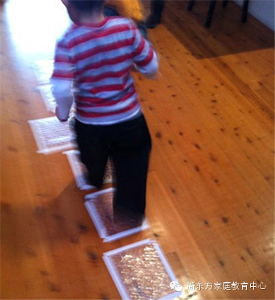 17、踩泡泡膜:找一些塑料泡泡包装膜,剪成一段一段的,用胶条贴在地板上,让孩子去踩,当小脚丫与泡泡膜进行亲密接触时,会是什么新鲜的感觉?这个充满刺激的小活动一定会让小朋友爱上的。如果室内的温度还okay,可以让孩子脱掉袜子去踩踏,很有利于他们的触觉发展哦。