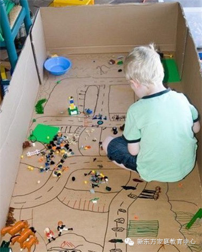 9. 大纸箱游乐场:将家里不用的大纸箱取出来,让小朋友自己来绘制一个游戏场,将小脑袋里想象的情景都实现出来,再把乐高小人或者小玩偶都拿来,在自己创造的游戏场里玩情景游戏,充满乐趣。