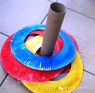 5. 套圈游戏:一次性纸盘+卫生纸芯,自制的游戏道具,一样乐趣多多。