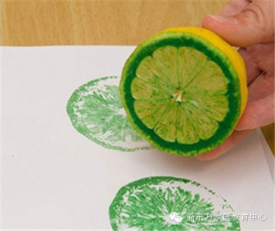 23、蔬果涂鸦:你有没有带孩子仔细观察过蔬菜水果? 看看借助于颜料,它们会展现出怎样的迷人印记?